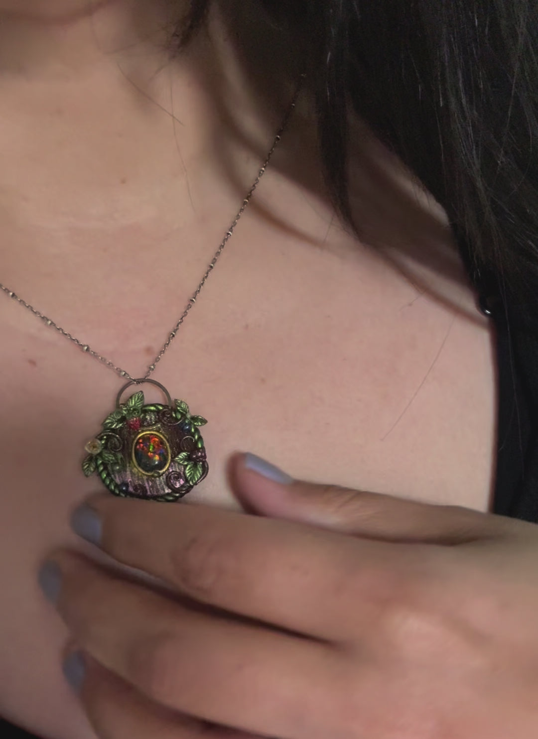 wear a magical fairy door around your neck! She features a beautiful dichroic glass cabochon. Handcrafted and completely one of a kind.